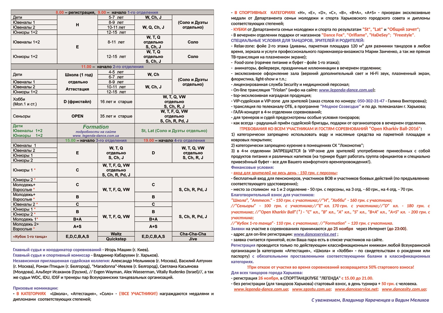 Организаторы - Владимир Караченцев и Вадим Мелихов при всемерной поддержке Департамента по делам Семьи, Молодёжи и Спорта Харьковского Городского Совета, IDU, СГОСТУ, ФТСУ и других Всеукраинских Танцевальных Организаций.